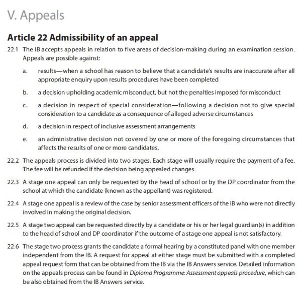關于申訴,小伙伴們可以根據IBO給出的《General regulations: Diploma Programme》第22條成績申訴內容聯系IB協調員等相關人員進行申訴。